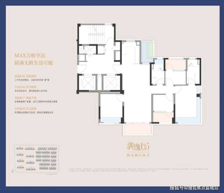 高定满:高层户型实现超高得房率、约270°景观视野与独立电梯厅;叠墅产品拥有生长型可变骨架与大尺度奢阔空间。9套风格各异的高定选择,从色系、材质到品牌,满足个性化需求,交付即满载。满系专属“寻满四时”M-TIME服务,则让这份圆满持续生长。