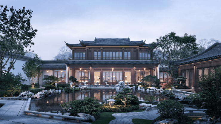 约1.04超低容积率之上,144席纯粹国风合院的设定,为每一户都保留私享的院落,坊巷成街,邻里相睦,一围一合,尽揽天地。
