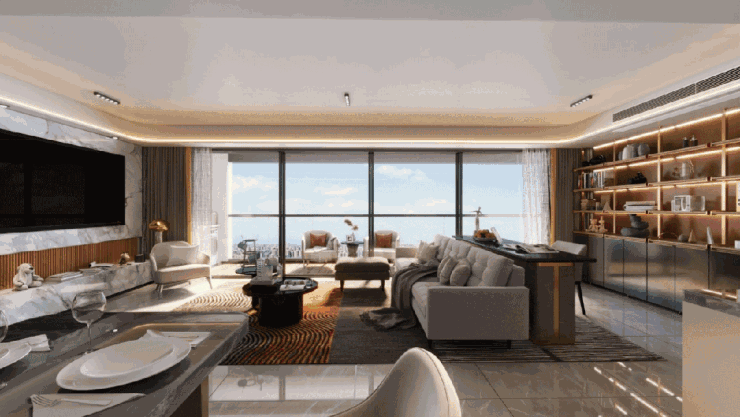 而更重磅的建面约168㎡观澜奢宅,则像是为城市塔尖量身定制的“稀缺限藏品”,从约17.6m的巨幕五开间面宽,到约9.5m的跑道式阳台,再到约55㎡LDKB家族式巨厅、百变X空间,以及南向双套房主卧……不仅将室内每一个空间的尺度都做到“MAX级”,更让视野和格局无限生长。