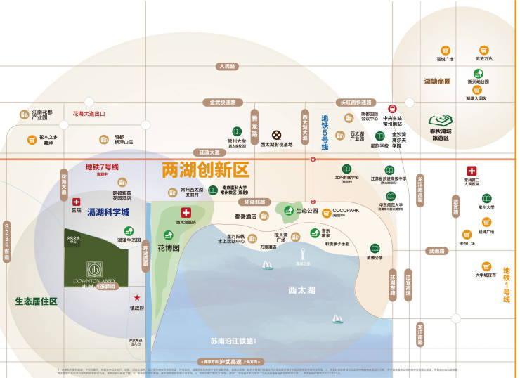 两湖核芯,贵隐西太湖。拥揽约190平方公里湖面,向水而兴,环境优美,气候宜人,植被覆盖率超过95%。