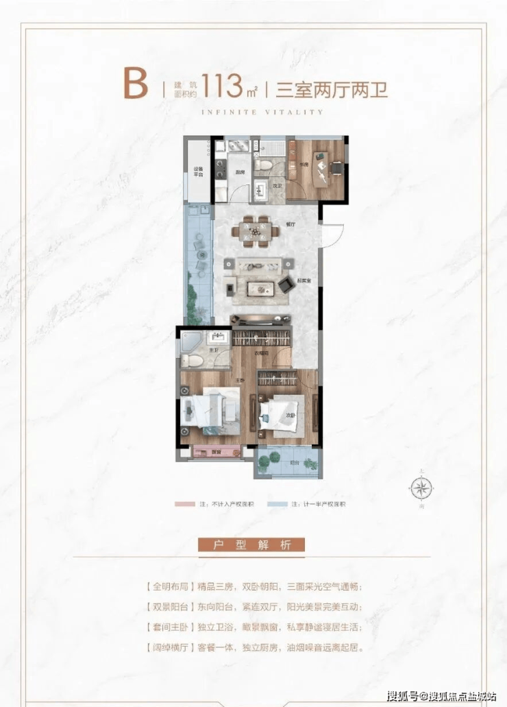 2#楼22层,东西边套113平,中间套103平,3梯5户。