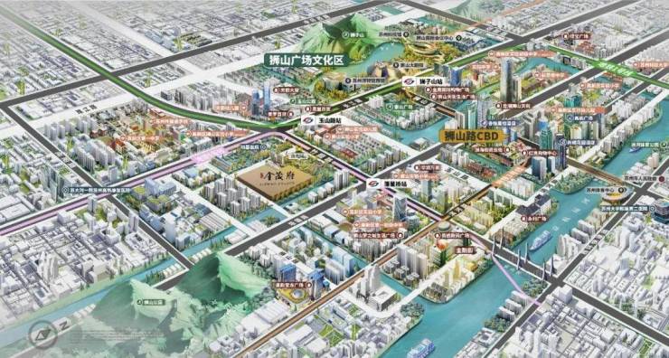 三横三纵的路网体系一一三横:竹园路、狮山路、何山路。三纵:塔园路、长江路、滨河路。东连西环,西接中环西线,南达苏福快速路,北链中环快速路,城际出行便捷,轨交1号线(玉山路站)、5号线(落星桥站)在侧。