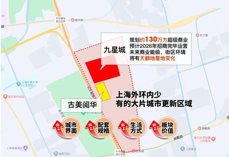 何况,古美周边强邻如众星拱月般环绕,徐家汇、莘庄、虹桥、七宝等产业人才源源不断输入。