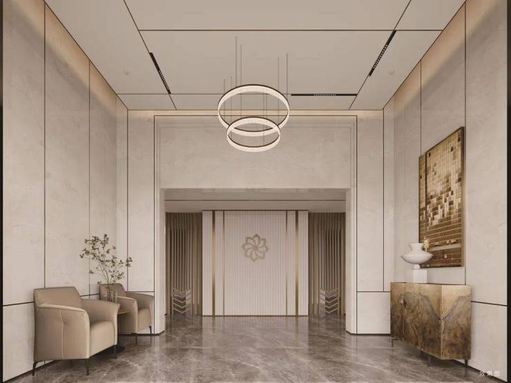 再次,项目首层大堂与电梯轿厢品质感拉满。