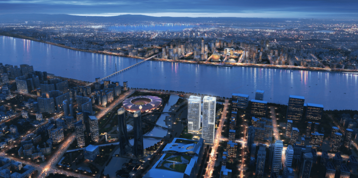而眼前这环球中心-市民中心-日月同辉-莲花碗-北斗七星的9公里连线,竟不逊风骚。