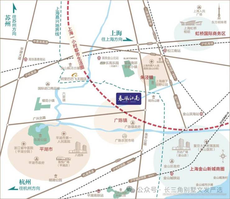 与上海金山廊下仅一河之隔,距金山北高铁站约20公里,距莲廊专线约2.5公里,平沪两地将实现“半小时高铁圈、一小时通勤圈”。
