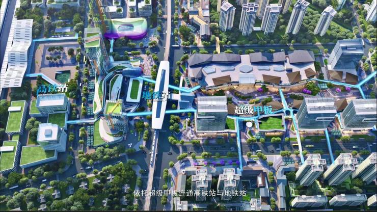 “1”100m:10号线地铁站、高铁站、超级甲板连接30万方购物中心;
