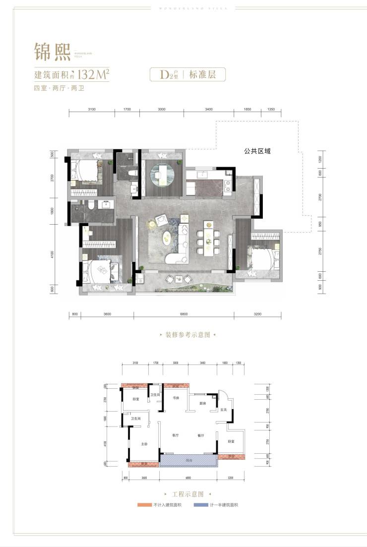 132㎡标准层户型(D2户型)