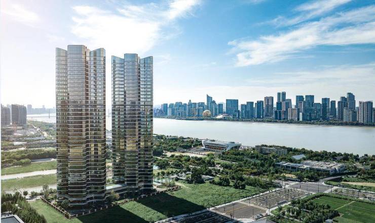 在项目设计理念上,以杭州市市花丹桂为原型,四个方向的型面均为桂花花瓣造型依次展开,配上倾泻直下的鎏金玻璃幕墙,在阳光的映射下极具贵气。