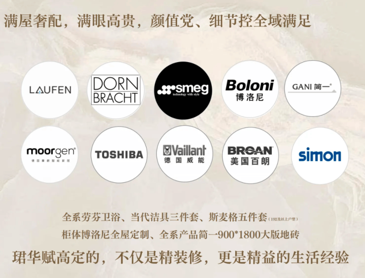 甄选瑞士百年卫浴品牌——劳芬、龙头届“劳斯莱斯”——当代、欧洲贵族厨电品牌——斯麦格、世界先锋橱柜品牌——博洛尼等全屋定制。
