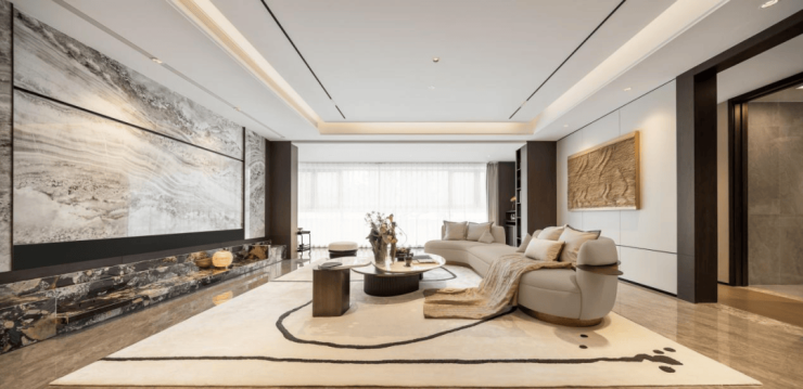 公区的地面铺设都是采用简一90*180cm的大面砖一体通铺,成本极高!