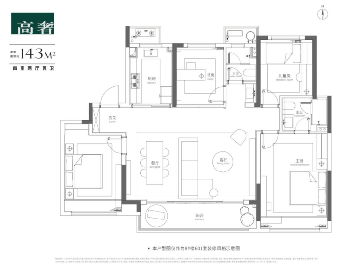 建面约143㎡豪奢四房: