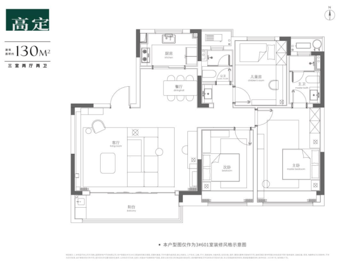 建面约130㎡阔境三居:
