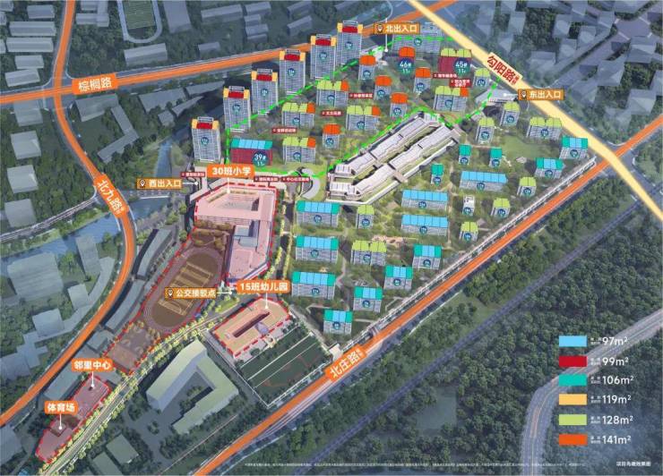 【户型面积】建面约99-121㎡准现瞰景高层;建面约97-141㎡低密实景洋房