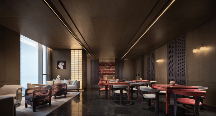 目前开放25F的会所,设置了行政酒廊、私宴厅、高端茶室等,打造超总时代的壹号圈层