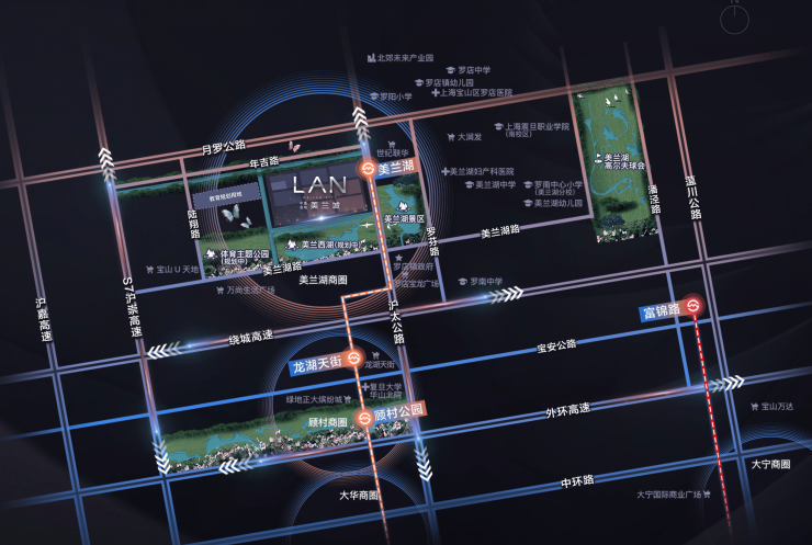 (1)中心铺:作为罗店CBD,外有大型居住区加持,项目周边5km范围内常驻人口已达40万。紧邻美兰湖别墅区,藏有5万左右高消费人群。