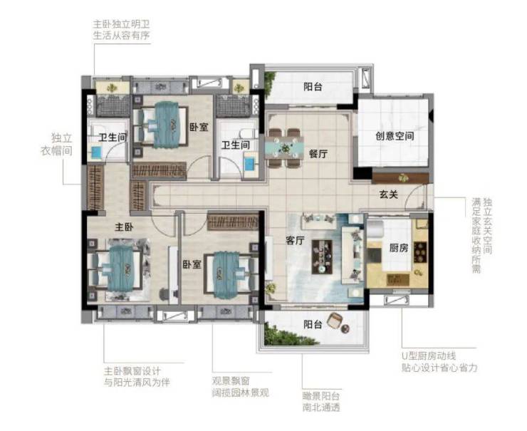 建面约124㎡3+1”房户型