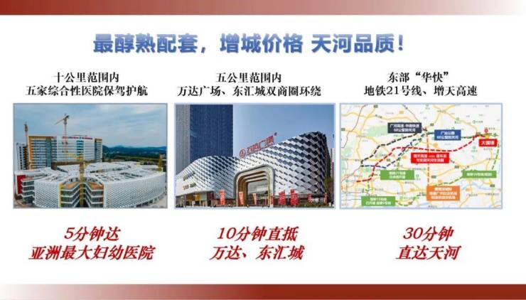周边还有增城万达广场、东汇城双商圈,坐地铁,仅一个地铁站就可以到了。