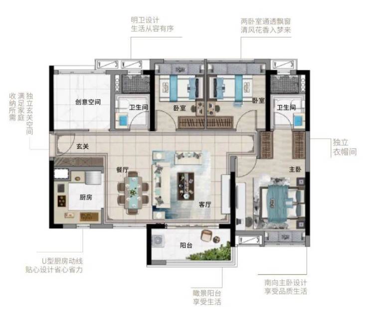 户型设计涵盖了从约72平方米到124平方米的不同需求,包括“2+1”房、“3+1”房等多种选择。所有户型均采用智能精装修交付,也都是现房了!