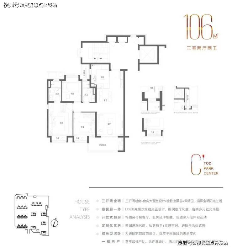 格局上,该户型是市场备受欢迎的三开间朝南+动静分区经典款户型。