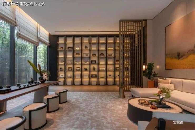 第一重奢阔门厅,巍峨门庭,中轴对称建筑徐徐开篇,中心凌云松迎宾,青松遒劲,气势恢宏;第二重超五星级大堂,近6米高的大堂,整个墙面运用香格里拉酒店专用的黑荒料奢石,碧潭金沙的地面,背景墙以纯手工定制宋瓷官窑的手法打造独特的陶瓷挂画艺术品,营造出考究、厚重内敛的奢华感;第三重独立入户大堂,奢华铺陈高贵而有专属感的私家领地,光影流转,构成恢宏的门庭礼制空间格局。