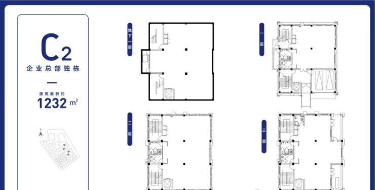 B/C区 企业总部独栋B区、C区总部独栋,主力面积为1200-3460㎡,带独立电梯和车库,其中B10 由园区自持,作为未来园区的运营服务中心。
