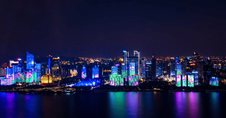 另一侧,奥体场馆和国博中心镶在窗前;目光向西,钱塘江绵延10公里,六和塔、西湖群山影影绰绰……