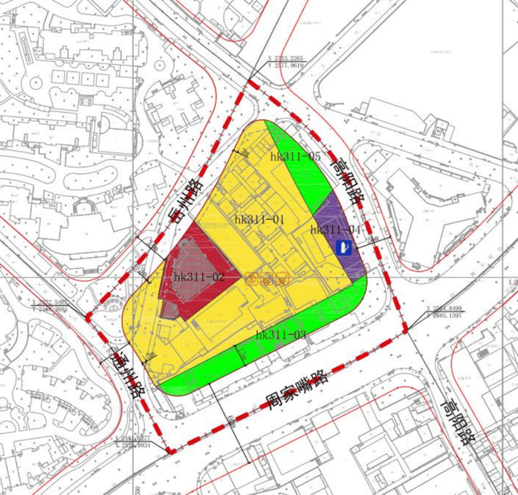 四至范围:东至hk311-05和hk311-04地块,南至hk311-03地块,西至通州路,北至岳州路和hk311-02地块