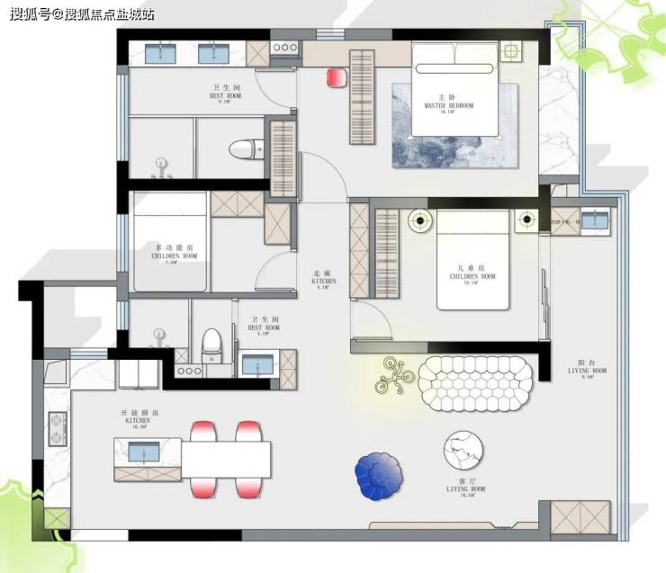 此方案针对年轻夫妻的业主,能够接受大胆的空间创新,不拘泥于传统布局。