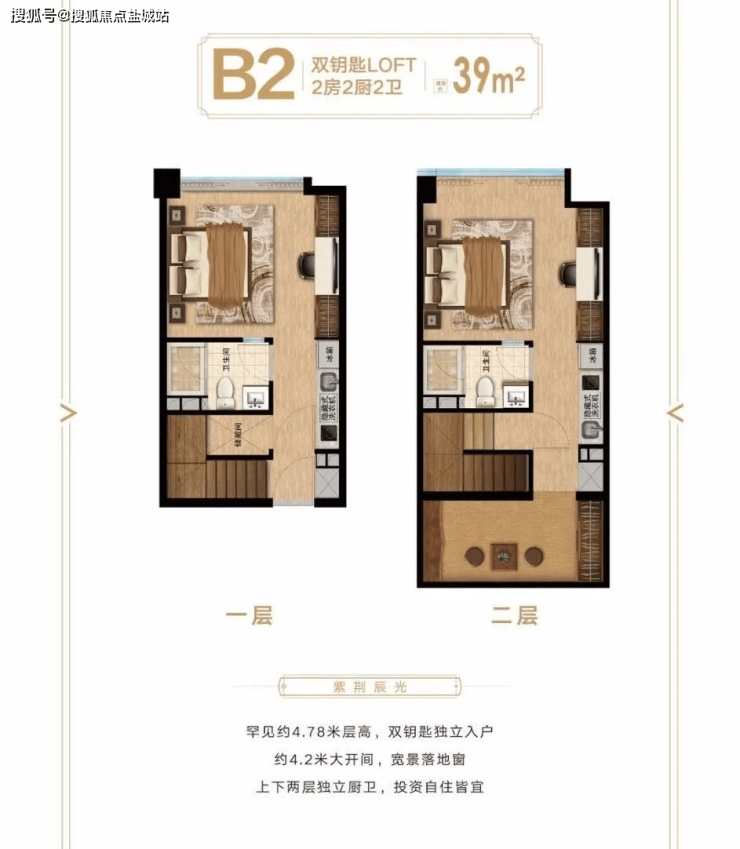 紫荆辰光此次产品主力户型约45-60㎡的双钥匙LOFT。突破性采用杭州市场上难得的约4.78米层高设计,居住舒适度大幅提升,能够真正奢享两层空间。