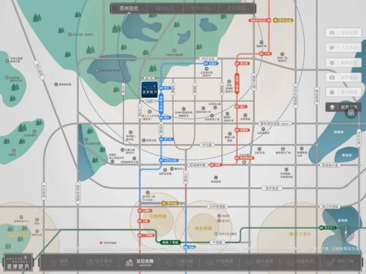 【自然环境】紧邻广袤无垠的21.7平方公里中央公园,荷塘月色湿地公园、苏州花卉植物园、体育公园环绕四周,绿意盎然,生态宜居,让您在城市之中也能享受自然之美,呼吸之间皆是清新。