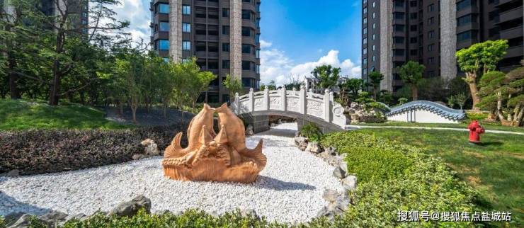 小区内部的 新中式山水园林 设计与城市绿化自然过渡,设置众多 艺术雕塑、景观休闲步道、中央景观层叠式水瀑布 等,形成浑然天成的园林景观。
