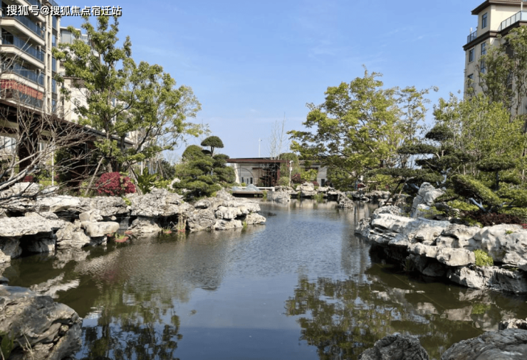 中央设置湖景,与原生太湖石堆砌搭配,加上休闲连廊、名贵树种、拱桥,形成山水园林意境,景观更加丰富。
