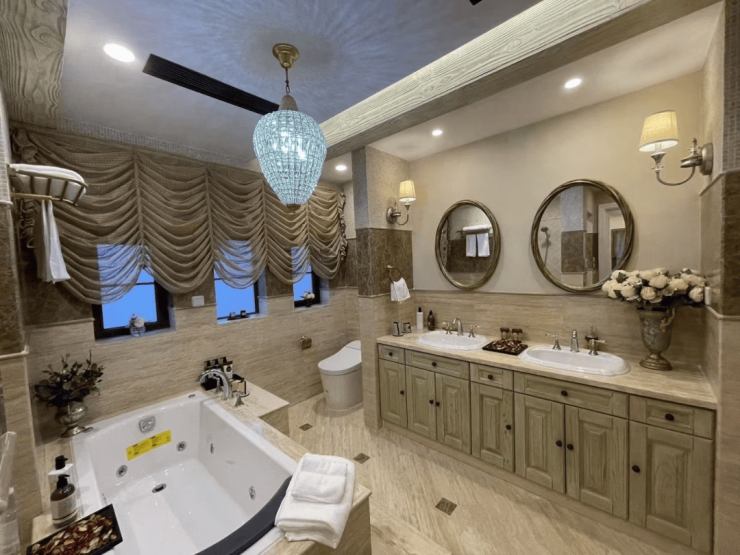 二期共63户,三期47户,目前在售房源面积约266-342㎡,户均占地达1亩-1.5亩,地上2层,地下1层,赠送下沉式花园约170-200㎡+花园约320-680㎡,毛坯交付,款清交房,总价约1520万起。