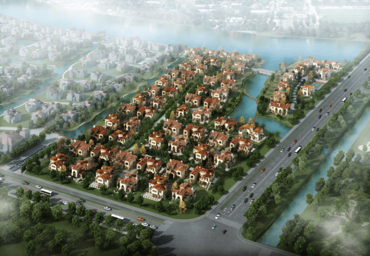 项目占地约26万㎡、建筑面积约10万㎡、绿化率约70%、容积率才0.32,由130套独栋别墅组成。