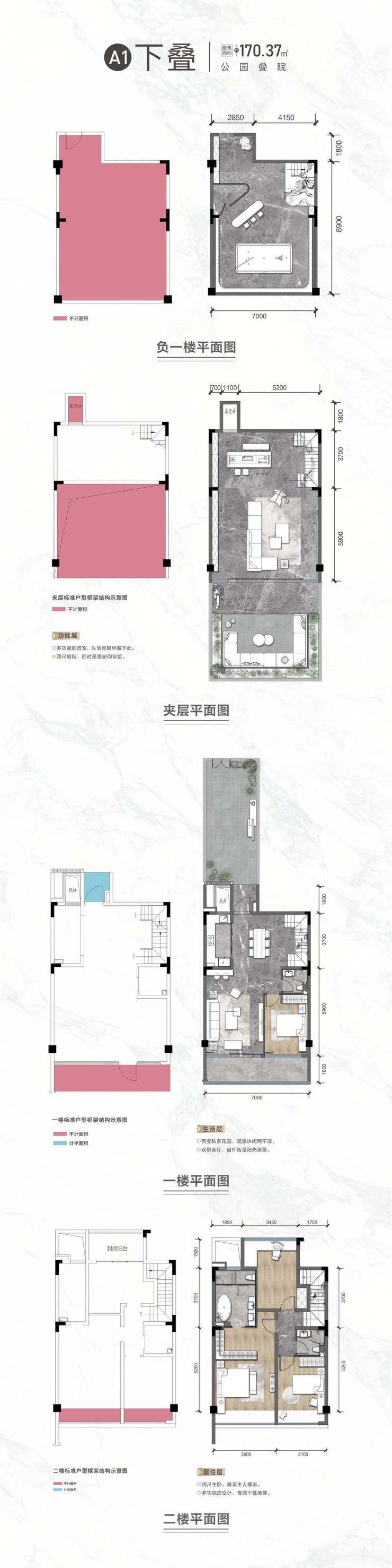 下叠(A1)建面约170㎡ 最大实得面积约400㎡