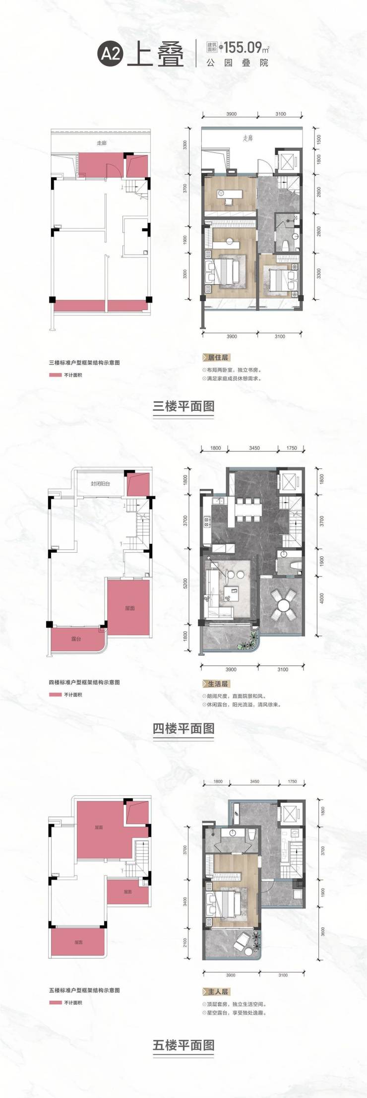 层层有露台 大面积主人层 私享个人空间;