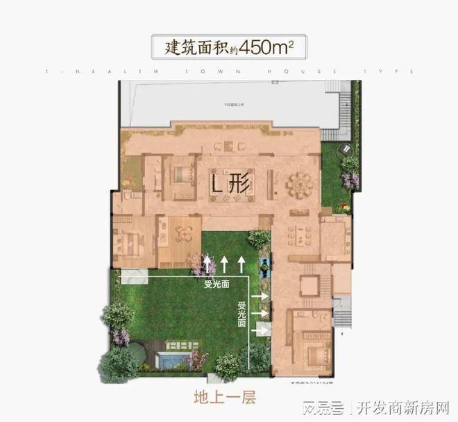 其中,建面约450㎡的高阶户型更是采用了L型围合布局,庭院面积最大可达约250㎡,让院落与一线翡翠湖湖景连成一片,仿佛置身于一座庄园之中。这种设计不仅增加了居住空间的私密性,也让居住者能够尽情享受大自然的馈赠。