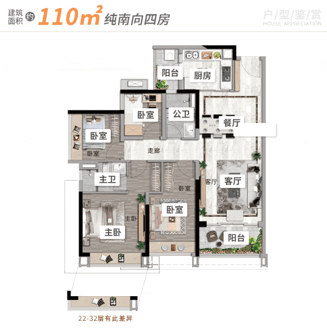 主打2梯5户的产品,95-118㎡带装修平层/复式四房,现楼。
