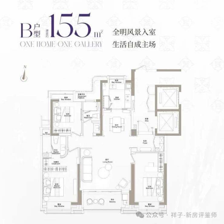 产品户型:建面约155㎡ 3房、约193㎡ 4房