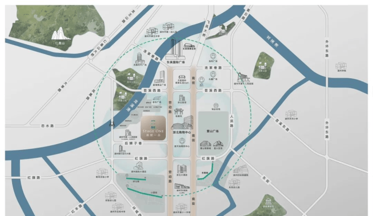 项目依傍劳动路、南街城市轴心位置,坐拥市芯黄金动脉之上,西接湖州站,东临湖州东站等,畅行长三角都市圈。南北“两横两纵”四条主轴路网贯穿湖州,极速通达全城。