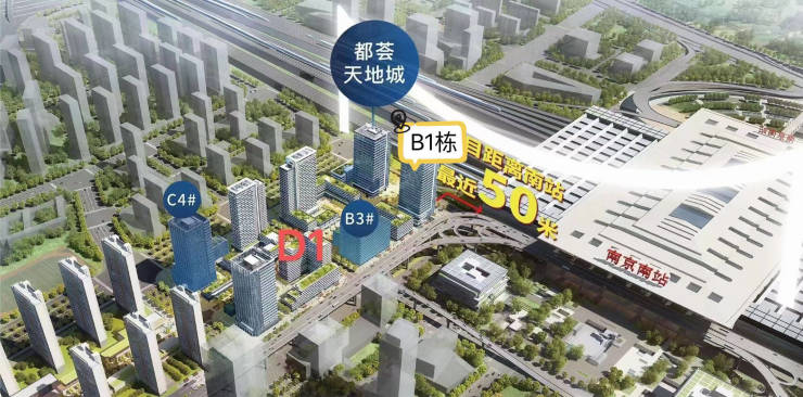 都荟天地写字楼:是南站首个城市综合体项目,项目总占地约10.85万方,总建面积约40.48 万方,ABCD为商业地块,分为办公、商铺和公寓,总建21.88万方,B1栋距离南站地铁出口仅150米。