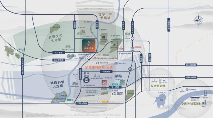 58平方公里云城规划40万人口需求,涵盖高铁西站、航空航天中法学院、国家版本馆等地标建筑,已成为杭州下一个城市发展核心;