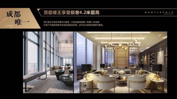 望江名门楼王升级空间美学尺度感,打造成都唯一极奢3.9米层高,打破市面现有大平层豪宅布局的层高压抑感,给予业主极致的通透与奢适。