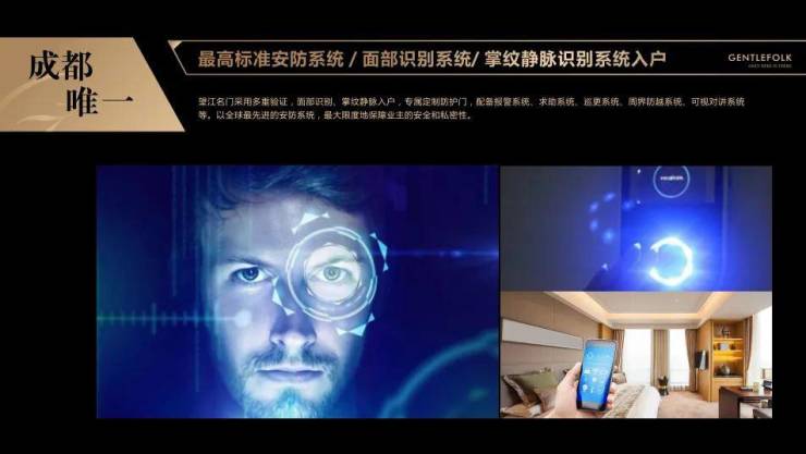 望江名门采用多重验证,面部识别、掌纹静脉入户、专属定制防护门,配备报警系统、求助系统、巡更系统、周界防越系统、可视对讲系统等,以全球最先进的安防系统,最大限度保障业主的安全和私密性。