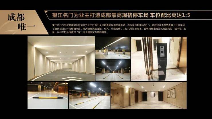 望江名门作为成都豪宅标杆,不仅成为配比高达1:5,更在设计上让停车场与项目整体风格相呼应,最大限度满足通透、明亮、动线明确、人性化等进阶需求,整体风格定调为沉稳温润的“暖木棕”色系,以此传递对“家”给予的安定力量的渴望。