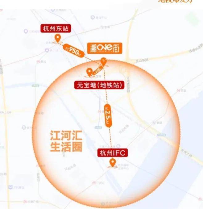 项目拥有四通八达交通网,1.2KM内有杭州东站、沪杭甬高速、空港高架、钱塘快速路、及1.4.6.19号四地铁环绕等全能交通配套,距离元宝塘站仅约270米,快速通达全城,为项目注入源源不断地消费客流,人潮即钱潮。