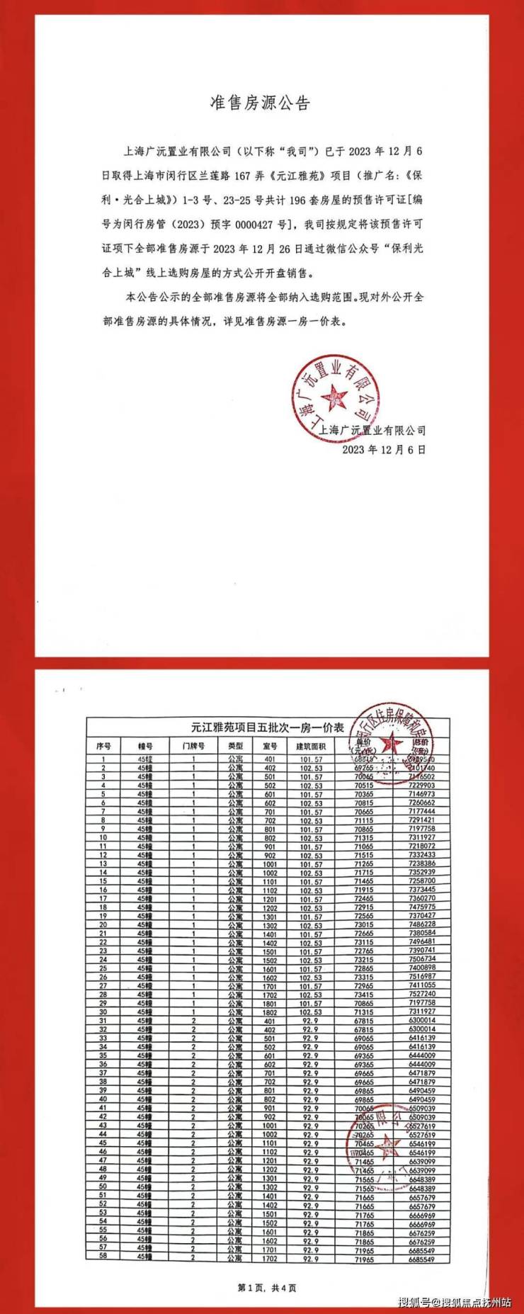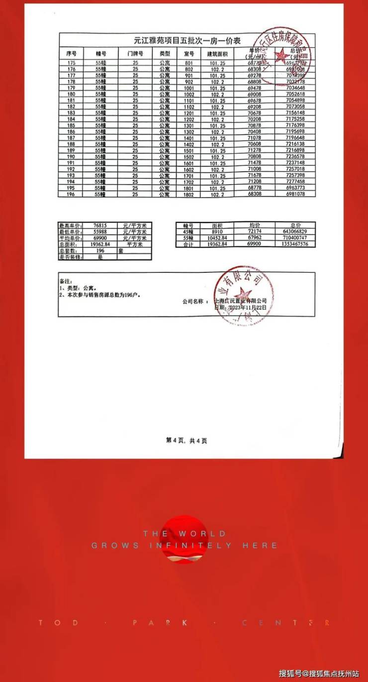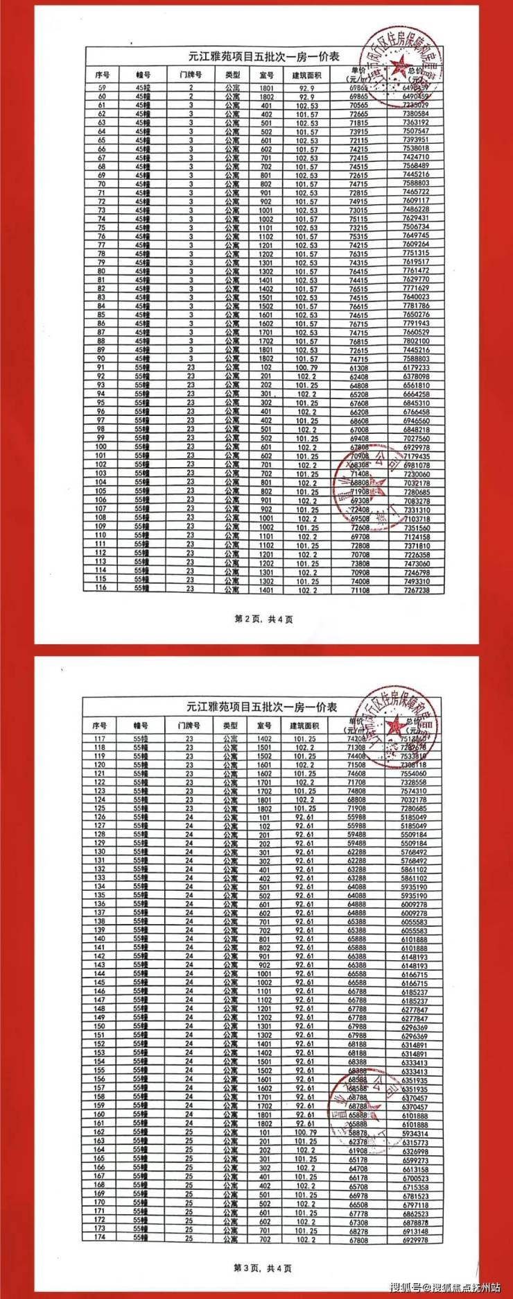 附一房一价表: