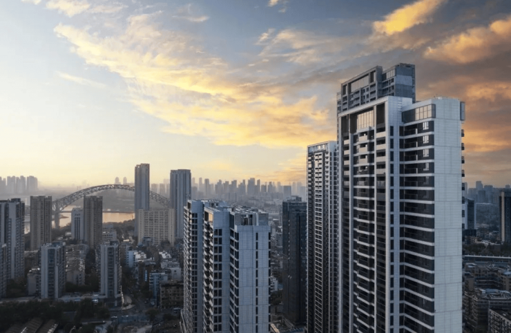 时尚建筑立面打造三段式类公建化外立面,城市地标级封面作品,沿河大道天幕,简约设计艺术赋予建筑审美,给汉口一座闪耀的城市名片。