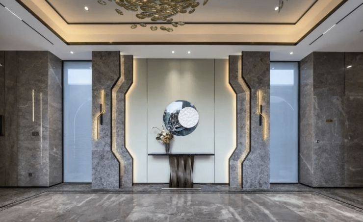 踏足实景示范区,迎面而来的是无微不至的至臻用心。汉口1872洞察日常生活的痛点,为汉口开启更加美好的人居体验。约45米面宽的时尚轻奢门头,尽显高端大气,让您每一次归家都充满仪式感;类公建化的建筑立面,顶部和底部采用大面积玻璃和玫瑰金的铝板以勾勒金属线条,建成后将成为一道城市的靓丽风景线;公区大堂地面以石材铺装,选取高品质岩板上墙,打造轻奢感十足的星级大堂,归家的每一步都是流转的风景。